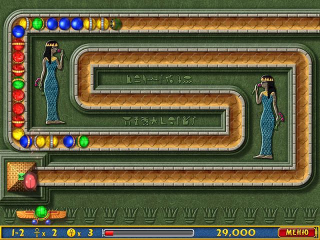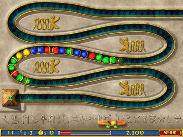 Поразительна простота освоения игры: не подпускайте жука-скарабея, толкающего магические шары, к своей пирамиде. Выстраивайте одноцветные цепочки из трёх и более шаров, чтобы они исчезали, превращаясь в магическую пыль и в золотые украшения. Составляя особенно длинные цепочки одинаковых шаров, собирая большое число золотых колец, вы получите дополнительные бонусы. Последние позволят вызывать к себе на помощь скорпиона или использовать одно из древних заклятий.