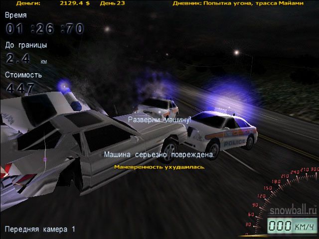 Оставьте "Формуле" ее ревящие трибуны: работа ночная, а единственные зрители - попутчики-дальнобойщики. Забудьте про команду "Старт!": когда сзади ревут сирены, нога жмет на газ безо всяких напоминаний. Расстаньтесь и с правилами: "Форды" шерифов подрезают, прижимают и даже перегораживают, лишь бы вывести вашу машину из строя и побыстрее надеть наручники.