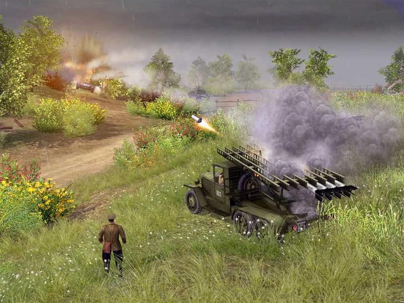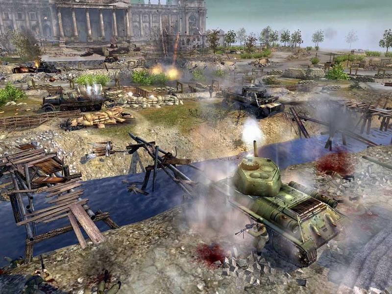 - Современные графические технологии, спецэффекты, разнообразные погодные условия, отличная анимация и достоверная физика. Объекты на карте, как и сама карта, полностью интерактивны: выехавшие на замерзшее озеро танки вполне могут провалиться под лед, а осколки погибающего здания — стать серьезной угрозой для пехоты.