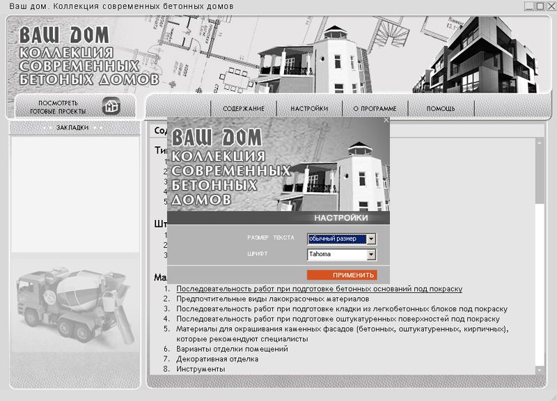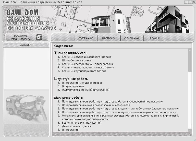 В ней вы найдете информацию по многим интересующим вас вопросам. Вы узнаете об основных типах бетонных домов, обо всех этапах строительства от заключения договора до внутренней отделки, о том, как лучше подобрать материалы для строительства и о многом, многом другом.