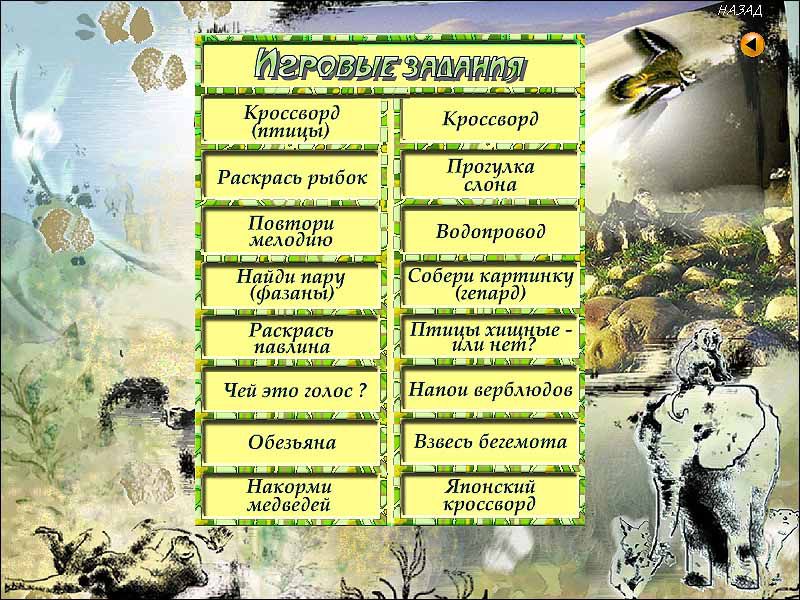 Программа поможет воспитать бережное отношение к животному миру, заставит задуматься над проблемой сохранения редких видов на Земле и понять, что каждый из представителей животного мира по-своему интересен и неповторим! Программа рассчитана на пользователей в возрасте 8–13 лет.