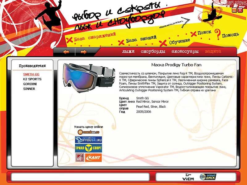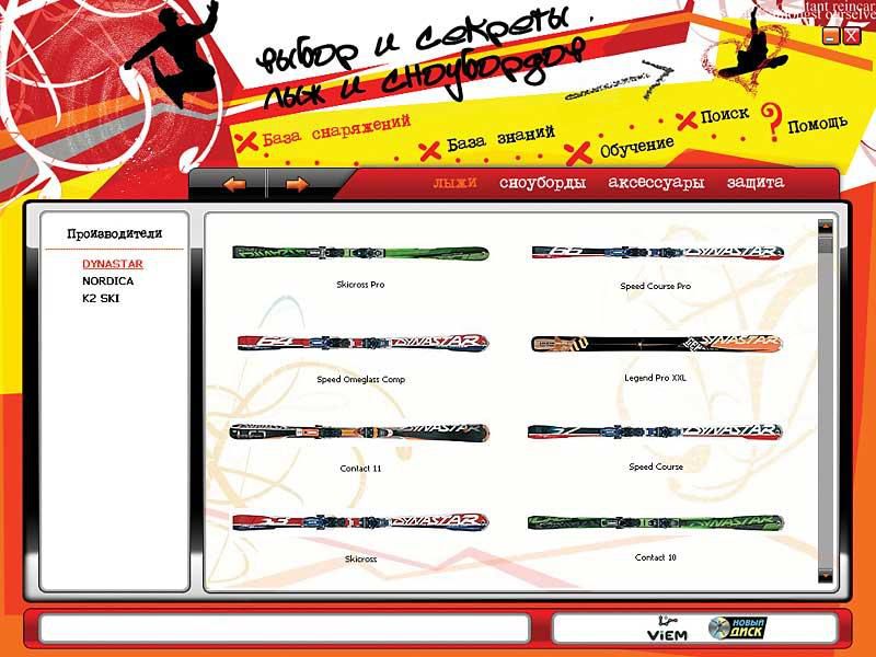 Здесь содержится вся самая важная и нужная информация о том, как и за какие деньги можно грамотно экипировать себя для встречи с горами. Для начала стоит просмотреть каталоги лыж, сноубордов, необходимых аксессуаров и защиты самых уважаемых брендов.