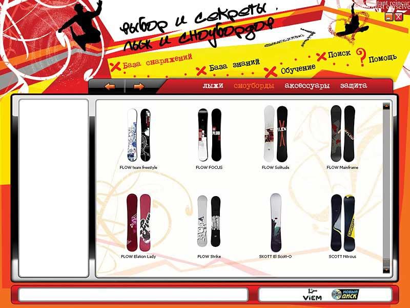 С помощью материалов диска вы узнаете, на что ориентироваться, выбирая свою первую доску, как подобрать подходящие лыжи и лыжные палки, а также изучите анатомию лыж, подберете крепления, ботинки и одежду так, чтобы они идеально подходили именно вам. Статьи и комментарии профессионалов познакомят с азами техники катания и снабдят полезными советами о том, где и как приобрести все необходимое.