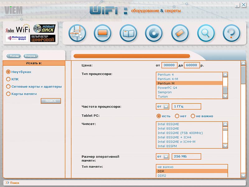 - Более 60 моделей ноутбуков с конфигурациями, адресами магазинов и ценами