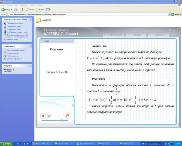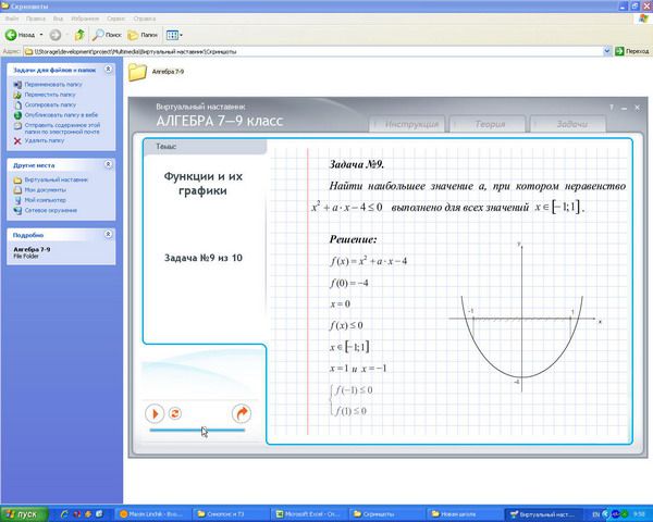 Программы из серии «Виртуальный наставник» призваны заменить репетиторов и дополнительные занятия в школе. Серия охватывает основные предметы школьной программы и содержит структурированные теоретические основы по всем темам, изучаемым в школе, а также возможность тут же проверить полученные знания на практике путём решения различных задач. А если решить задачу сразу не получиться, то полностью озвученное и подробно расписанное решение поможет вам в дальнейшем щёлкать такие примеры, как орешки!
