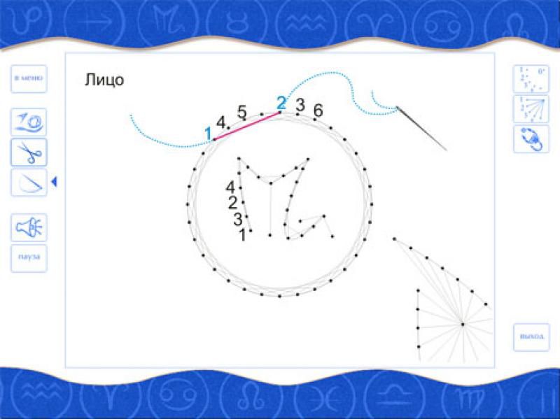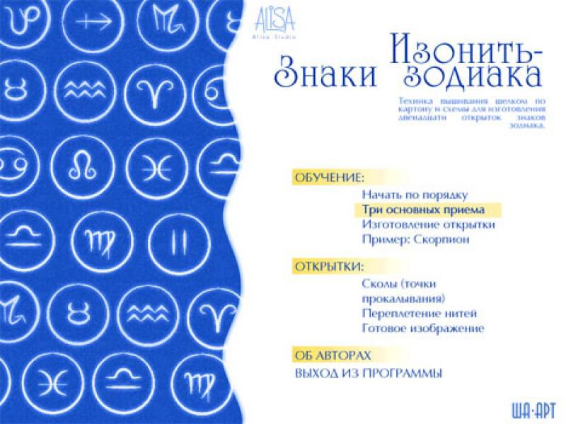 Всем тем, кто знаком с искусством изонити, также называемой нитяной графикой, наверняка понравится новая программа "Вышивка по картону. Знаки зодиака" от Alisa Studio. Диск знакомит с основными приемами, последовательностью работы, различными способами переплетения нитей. Все объяснения тщательно отработаны и анимированы, действует система подсказок, интерфейс программы очень удобен и прост. Для вышивания предлагается серия зодиакальных знаков, на основе которых можно изготовить оригинальные открытки, закладки для книг или декоративные панно. Каждое созвездие имеет свое аллегорическое изображение. Возможно, между астрологическим знаком и рукотворным изделием, созданным Вами, возникнет некая невидимая связь. И руки, прикоснувшиеся к вышивке, ваши мысли и чувства, воплотившиеся в завершенной работе, сохранят и преумножат положительную энергетику.