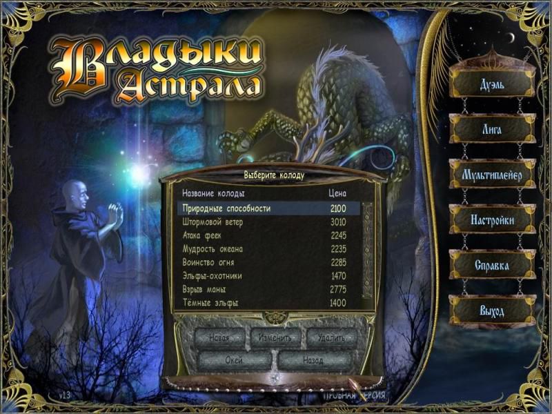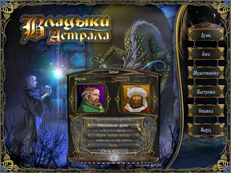 «Владыки астрала» — уникальная стратегическая карточная игра, в которой вы сможете почувствовать себя боевым магом и сойтись лицом к лицу с множеством достойных противников — таких же магов, как и вы. В совершенстве овладейте силами стихий — и вам подчинится самая могущественная магия Вселенной. Обрушьте на врага ливень смертоносных заклятий, натравите на него армию призванных существ! Лишь одолев всех соперников, вы получите право именоваться истинным Владыкой астрала.