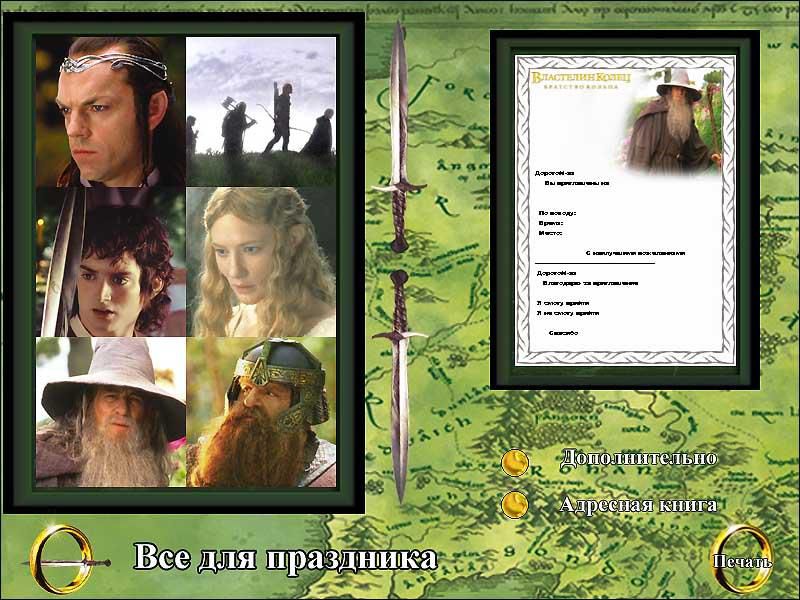 Ценители «Властелина Колец» смогут установить на свой компьютер тематические заставки и обои для рабочего стола и узнать много интересного о фильме и снимавшихся в нем актерах.
