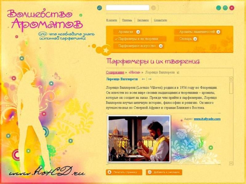 Порой так сложно найти в безграничном море запахов именно тот, который подчеркнет вашу красоту! Лучше всего, если у вас будет умелый помощник. И таким может стать мультимедийный продукт «Волшебство ароматов» из серии Fashion. Этот диск раскроет перед вами богатство мира ароматов и поможет выбрать именно тот волшебный запах, который подойдет именно вам.