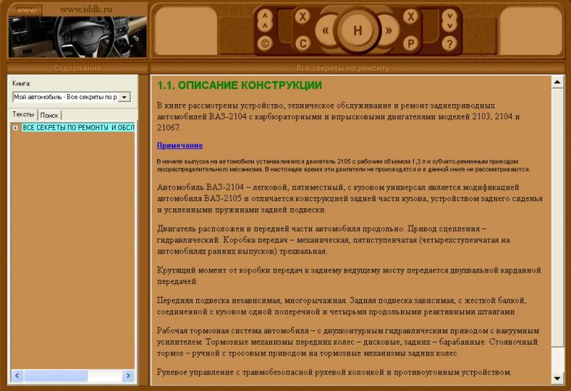 В основных разделах руководства описаны работы по узлам автомобиля ВАЗ-2104.