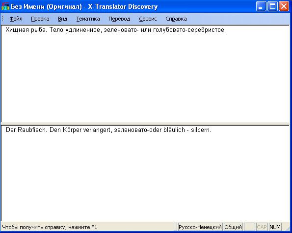 - Синхронный перевод текста: при наборе текста в верхней панели X-Translator Discovery, в нижней панели параллельно с вводом текста будет появляться его перевод;