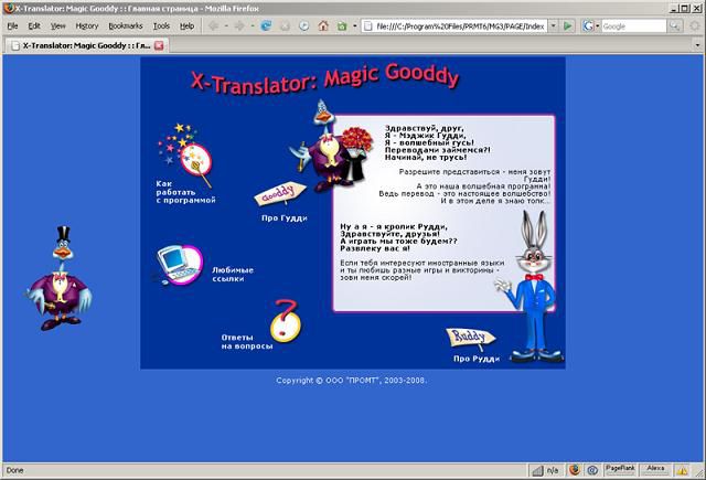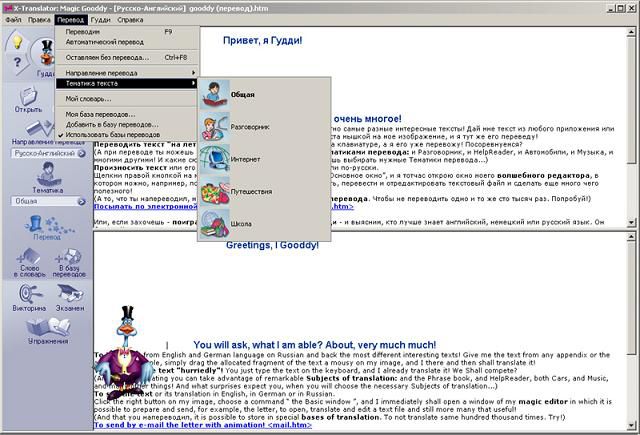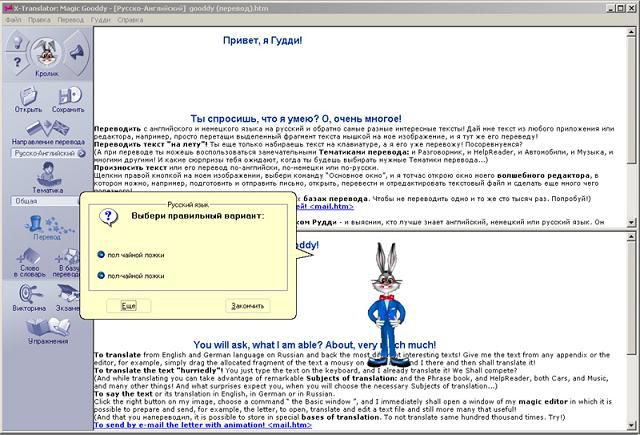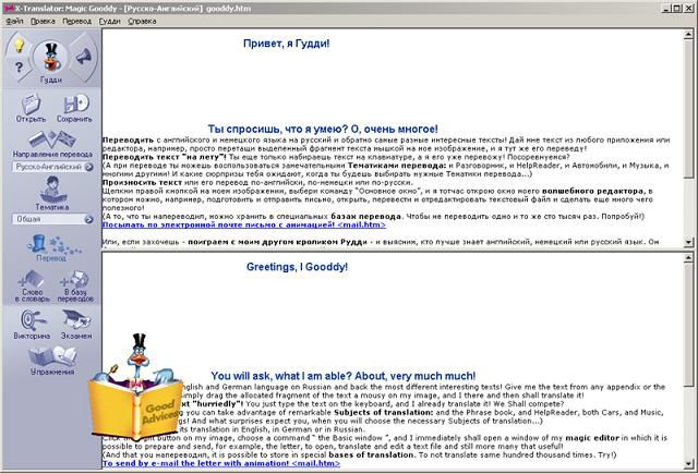 мгновенный перевод фрагмента текста при перетягивании на изображение гуся Гудди;