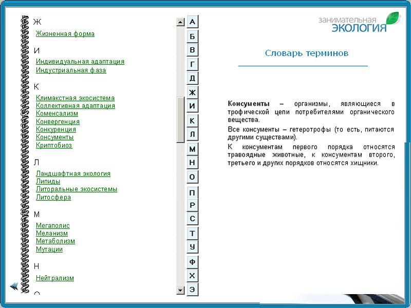 - Учебный материал, соответствующий программе школьного курса "Экология".